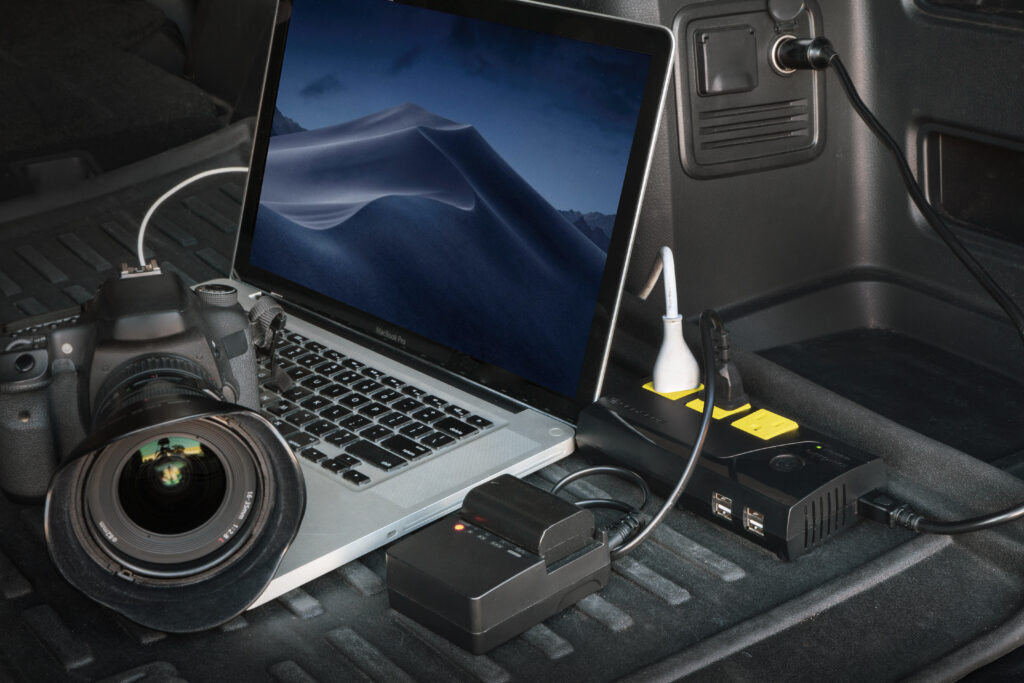 InVert 200 – a 200-Watt portable power inverter that converts vehicle power into AC and USB outputs, enabling responders to power laptops, tablets, communication equipment, and small electronics on-site when traditional power sources are unavailable.