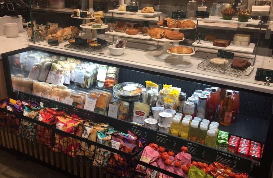Food and beverage items on display at a Starbucks location in Robbinsville, New Jersey, April 2026.